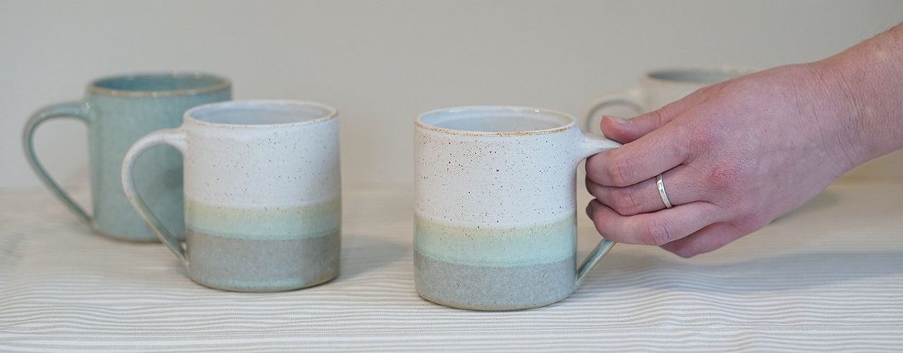 I am a potter, focussing on wheel thrown domestic stoneware. Originally from Hereford, I now work nearby at Earthrise Pottery Studio. I like to make quiet and simple ceramics that bring moments of calmness to your everyday. I explore sustainability by developing my own simple glazes which are less reliant on harsh oxides, use waste materials such as locally collected plant/wood ash and eggshells and I fire in a renewably powered electric kiln.