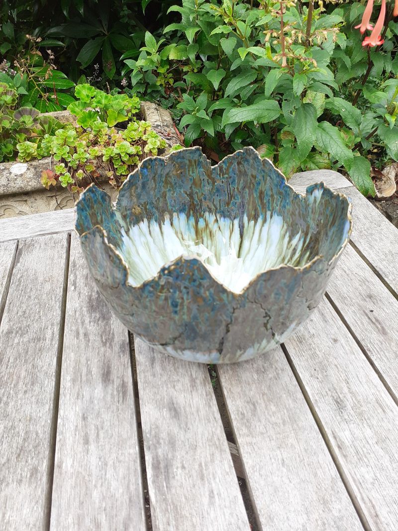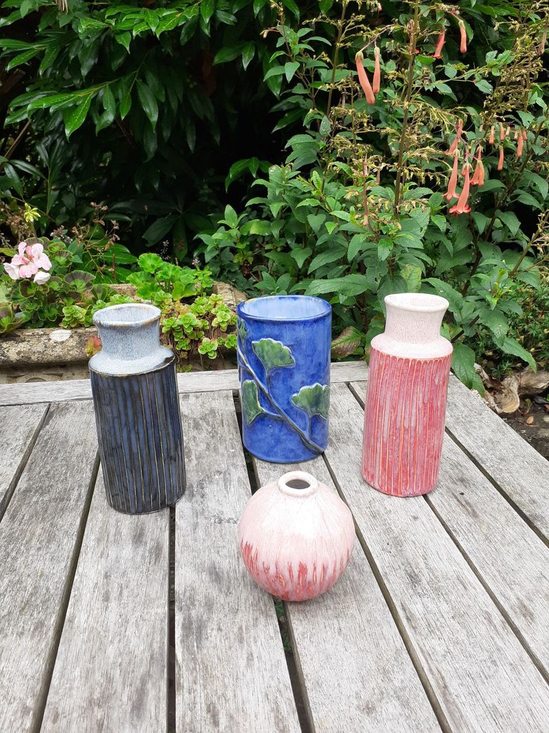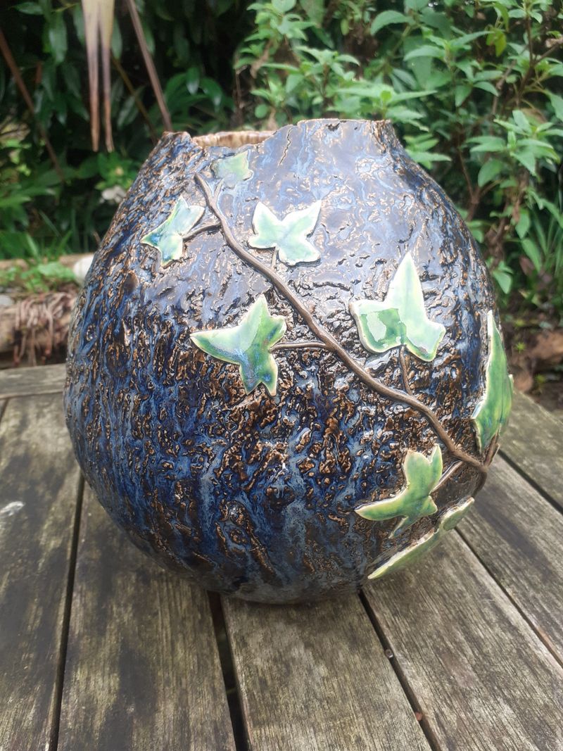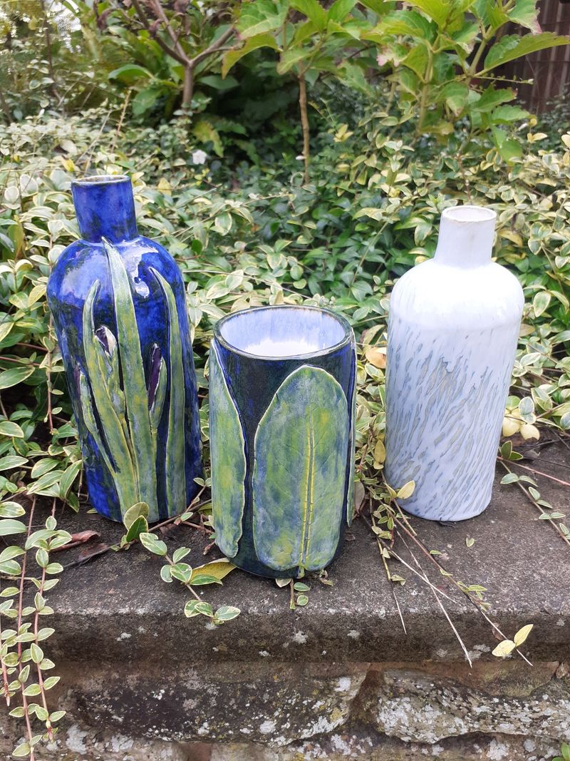My work is inspired by the natural world around me. Through creating texture by impressing tree bark, coral and other natural objects into my clay or by carving, it allows my glazes to respond in different ways to the surface texture I have created. I embellish some my pots with leaves, buds and seedheads which I create from original sources, either through impressions or by making moulds from rubber which I then cast in clay. In order for them to look natural, I sculpt all the stalks and branches by hand, copying what I see before me.